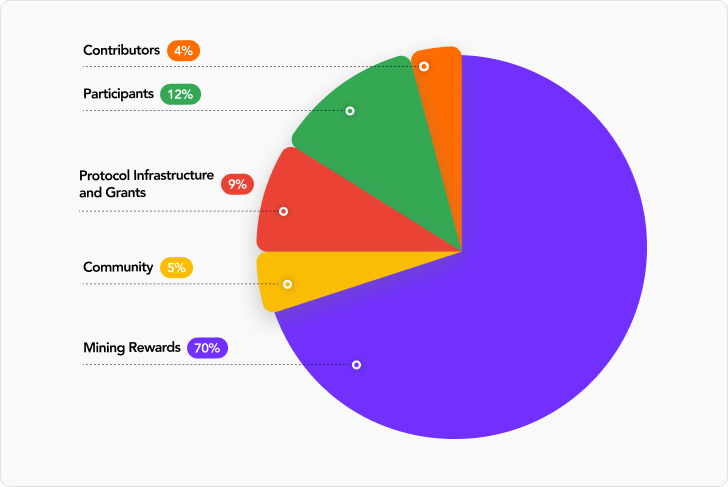 At the mainnet launch, 756,000,000 tokens will be available for liquidity providers. The balance will be unlocked every month for four years, starting six months after the launch.
