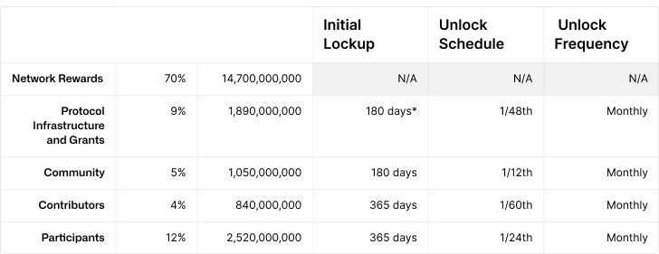 These tokens will unlock every month for two years, beginning 12 months after the mainnet launch.